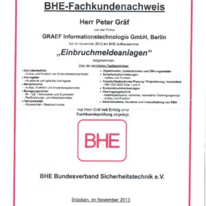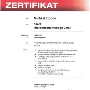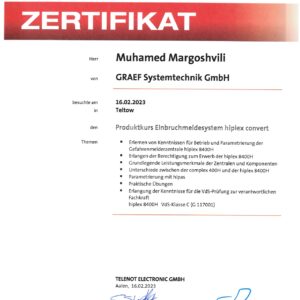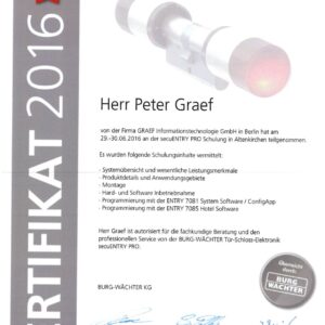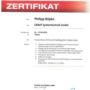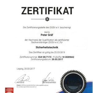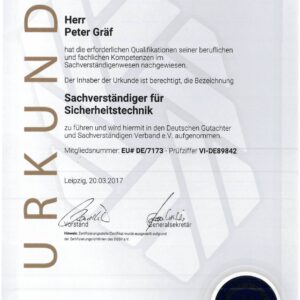 Die GRAEF Gruppe steht für erstklassige Sicherheitslösungen und höchste Qualitätsstandards. Unsere Zertifikate belegen unsere Fachkompetenz, Zuverlässigkeit und Einhaltung internationaler Normen in den Bereichen Gebäudesicherheit, Perimeterschutz und moderne Überwachungssysteme. Durch kontinuierliche Schulungen und Zertifizierungen stellen wir sicher, dass unsere Dienstleistungen und Produkte stets den neuesten Sicherheitsanforderungen entsprechen. Vertrauen Sie auf geprüfte Qualität – für Ihre Sicherheit.